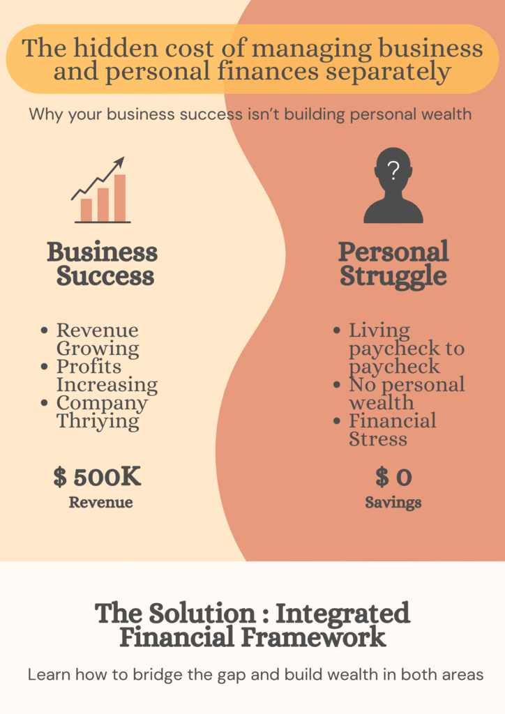 When you compartmentalize finances, you miss opportunities: your business might be profitable, but your personal emergency fund stays empty, you struggle to pay yourself, and you lose tax optimization chances. This leads to what I call “successful but broke syndrome.”